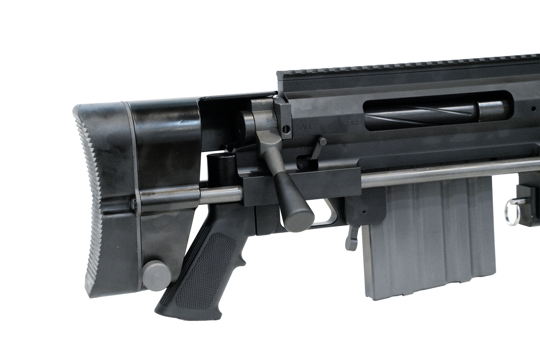 Modular Breakdown: True to the original design, the barrel can be removed and the stock collapsed, allowing this massive rifle to be broken down into a (relatively) portable footprint for transport.