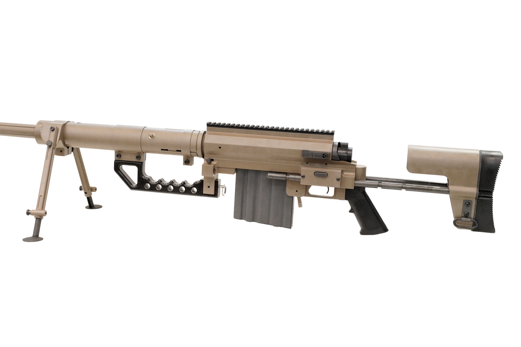Carry Handle: A functional, heavy-duty handle for transporting the rifle between positions.