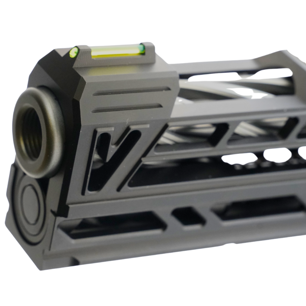 Features include the ground breaking LED illuminated front sight, as well as a fully skeletonized design to minimize weight.