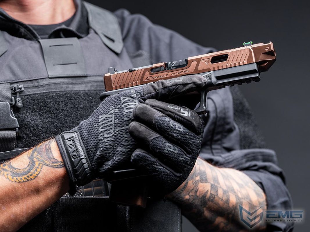 Integrated CNC Compensator & Magwell: Equipped with a CNC-machined compensator for a menacing front-end profile and a flared TTI-branded magwell. The flared magwell acts as a funnel, ensuring your reloads are consistent and lightning-fast during high-stress transitions.
