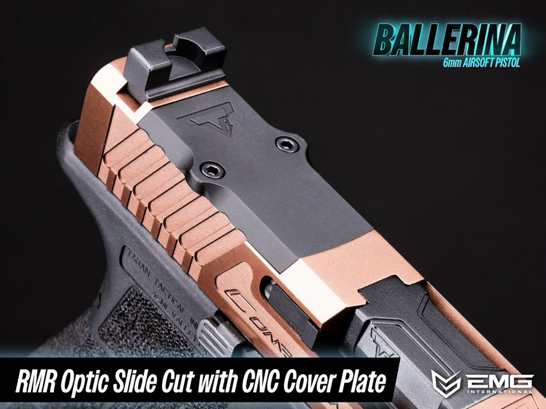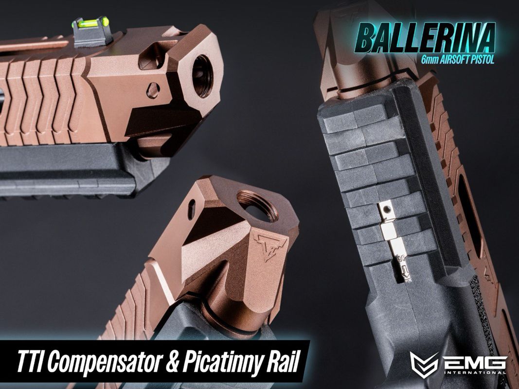 The EMG / TTI Licensed CNC Ballerina Gas Blowback Airsoft Pistol (Black) is a high-performance, professional-grade sidearm that embodies the "speed and precision" philosophy of Taran Tactical Innovations. While standard pistols often sacrifice style for utility, the Ballerina features a striking high-gloss black finish and aggressive CNC lightening cuts, making it a dominant choice for both competitive "Action Air" shooters and collectors seeking the ultimate tactical aesthetic.