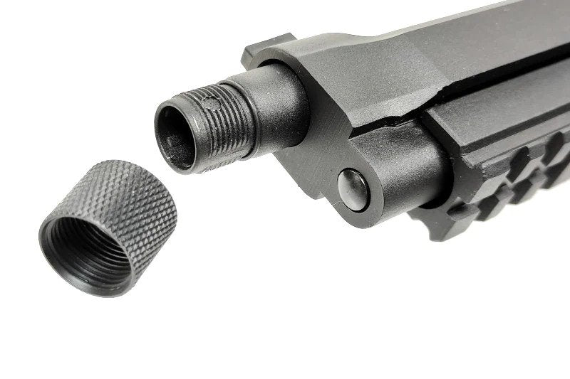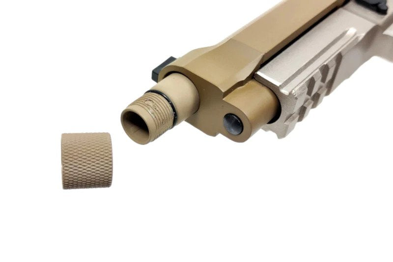 The SRC Airsoft M9A3 is an airsoft replica of the Beretta M9A3 pistol. recreational firearm designed for airsoft games and training purposes. The SRC Airsoft M9A3 replicates the appearance and some of the features of the real M9A3 pistol, providing players with a realistic and immersive experience. As an airsoft replica, the SRC M9A3 fires 6mm plastic BBs. It operates on compressed gas. The gas-powered versions typically use green gas or CO2 cartridges to propel the BBs. The SRC Airsoft M9A3 replica often features similar external characteristics to the real M9A3, including an integrated Picatinny rail for accessory attachment, a threaded barrel, and an enlarged magazine well. Airsoft guns like the SRC M9A3 are primarily used in competitive airsoft games, military simulations, and training exercises. They offer a safe and controlled environment for players to engage in tactical scenarios and develop their shooting skills.