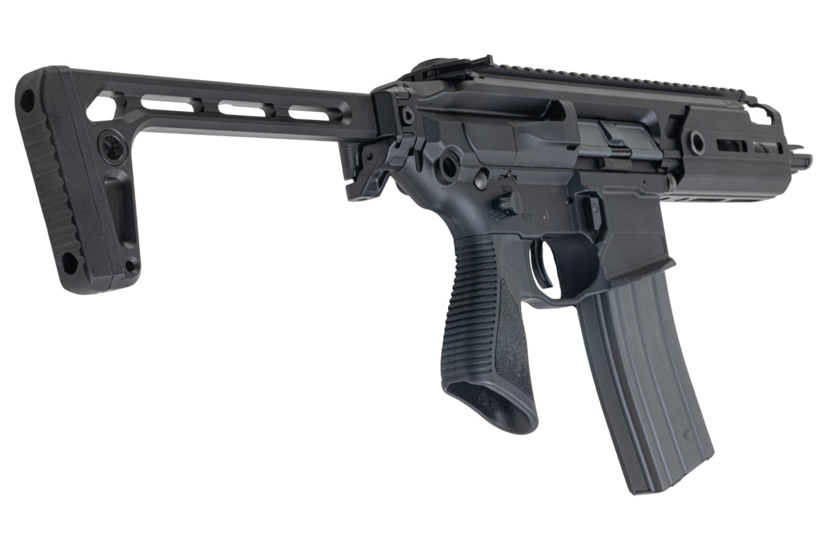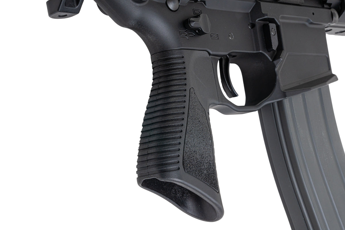 • Equipped with SS Minimalist Foldable Stock, a Unique PDW Pistol Grip and a 3 Pronged Tapered QD Flash Hider